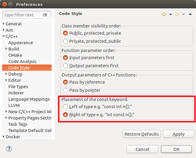 The Cevelop team is actively working on improving Eclipse CDT and frequently contributes not just bug fixes but also – after an incubation period in Cevelop – new features. We are happy that our const-placement configuration is now part of Eclipse CDT: