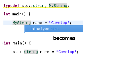 Other than being founded on Mars, Cevelop 1.3 comes with a new version of CUTE and improved refactorings. For example, Peter wrote a quick assist that refactors typedefs to using aliases: